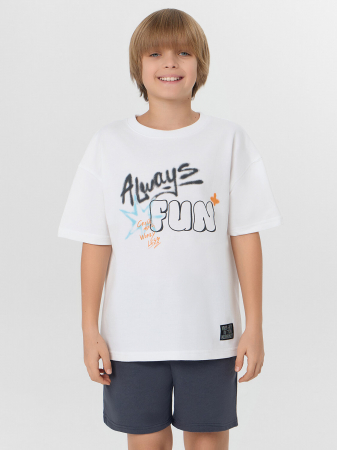 Стильный комплект для мальчиков. Состоит из футболки и шортов. Выполнен из высококачественного хлопка. Футболка прямого свободного силуэта, длиной до середины бедер, с круглой горловиной и короткими рукавами. Шорты длиной до колен или чуть выше, свободные, с боковыми карманами. В пояс из рибаны вставлен регулировочный шнур. Отличный вариант для повседневной носки, прогулок и путешествий. Широкий размерный ряд. Рекомендуем!