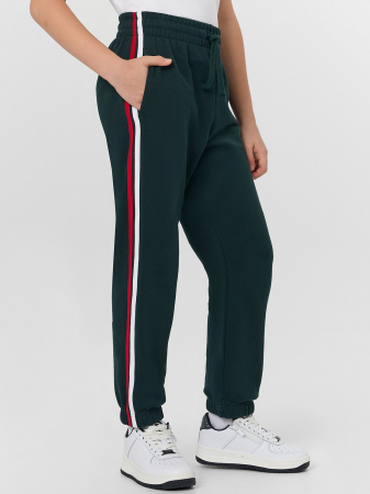 Нижние срезы обработаны в подгибку с эластичной тесьмой внутри 30RV. По бокам настрочены лампасы.