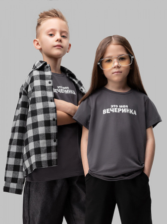 Футболка с коротким рукавом, полуприлегающего покроя, округлый вырез горловины. На полочке принт "Это моя вечеринка"
