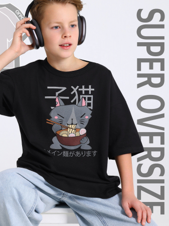 Оверсайз футболка для мальчика выполнена из кулира – легкого хлопокового полотна. Изделие прямого покроя, с короткими рукавами, со спущенной линией плеча. Круглый вырез горловины обработан эластичной бейкой из полотна компаньона. На полочке печать. Уход: только машинная стирка (руками не стирать!) при температуре 40 градусов, без предварительного замачивания. Изделия с печатью перед стиркой необходимо вывернуть на изнаночную сторону.