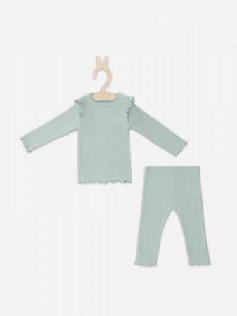 Весь комплект изготовлен из хлопка с небольшим содержанием эластана. Этот состав делает ткань дышащей, гипоаллергенной, приятной к детской коже и способной сохранять форму даже после множества стирок.