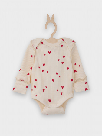 Боди выполнено из интерлока в рубчик для 1-3 месяцев (рост 56-62). Спинка и перед цельнокроенные. Спинка с переходящей кокеткой и цельнокроенной ластовицей.