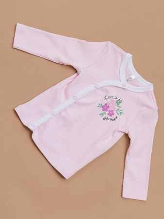 Кофточка для девочки трикотажная. Романтичный розовый оттенок с цветочным рисунком. Мягчайший интерлок пенье – невероятно нежная, дышащая ткань, безопасная для чувствительной кожи. Удобная застежка на кнопках – позволяет легко одевать малышку, не доставляя дискомфорта. Динный рукав, гипоаллергенные материалы – только безопасные для ребенка ткани.
