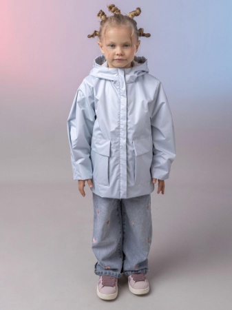 Модель оснащена центральной застёжкой-молнией с защитой подбородка, вместительным карманом под клапаном и капюшоном с утяжкой для регулировки объёма. Светоотражающие элементы повышают безопасность ребёнка в тёмное время суток.
