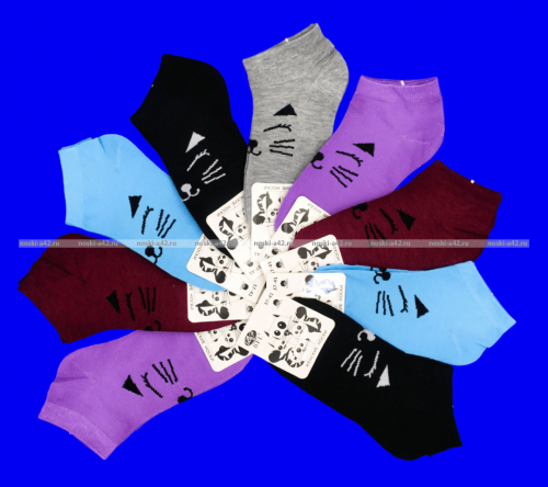 Носки женские укороченные спортивные - в упаковке 12 пар одного рисунка разного цвета.