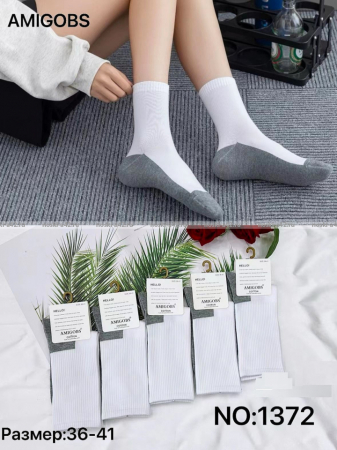AMIGOBS ВЫСОКИЕ белые носки (серая подошва) арт. 1372 оптом.
