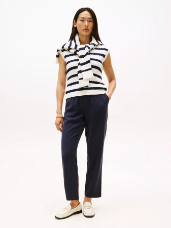 Tommy Hilfiger women's pant. Our lightweight pants are made from a fluid sueded twill blend treated with an enzyme wash for exceptional softness. With side slash pockets, back patch pockets and a jogger-style elastic drawstring waistband, this pair offers a relaxed fit for everyday wear.