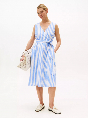 Tommy Hilfiger women's dress. Made from a cool blend of linen and cotton, our flattering wrap shirtdress is a polished silhouette for a multitude of occasions.