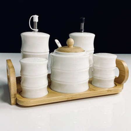 140-162 Набор для специй с сахарницей и бутылки для масла/уксуса 5пр. на под-ке BAMBO в под.уп.(х12) (арт. 140-162)