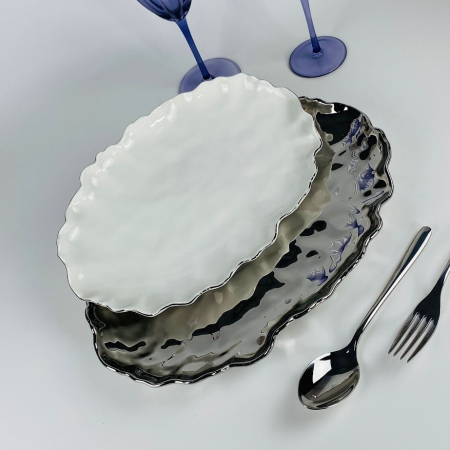 305-297 Набор из 2 овальных блюд 30,5/35,5см ВАНЕССА СЕРЕБРО в под.уп.(х12)Фарфор (арт. 305-297)