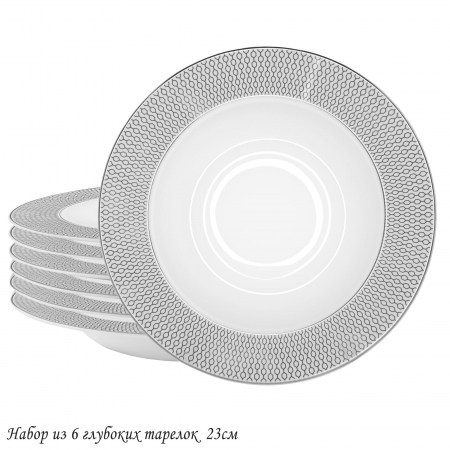 145-559 Набор из 6 глубоких тарелок 23см СЕВИЛЬЯ СЕРЕБРО в под.уп.(х6)Костяной фарфор (арт. 145-559)