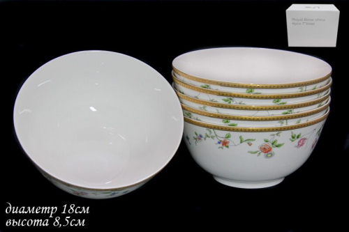 125-076 Набор из 6 салатников 18см. в под.уп.ЦВЕТОЧНАЯ ПОЛЯНА.(х6) Костяной фарфор
