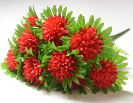 Искусственные цветы, Ветка в букете хризантема с листом 10 голов (1010237) (арт. 141.1001)