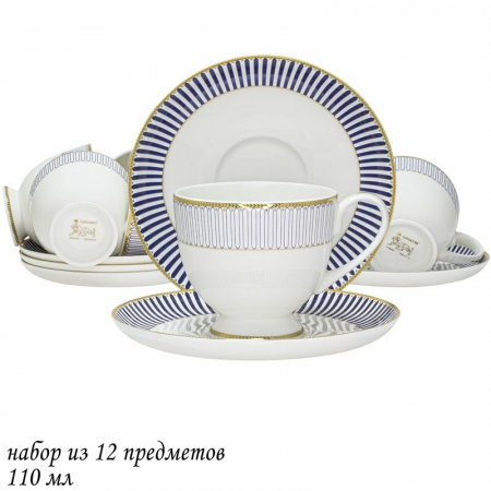 Коллекция посуды ИНФАНТА выполнена в классическом стиле из костяного фарфора. Дизайн глубокого синего цвета идеально сочетается с золотой каймой идеально с тонким прозрачным фарфором,