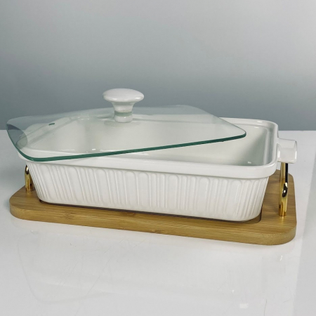142-157 Прямоугольное блюдо для запекания 31см с крышкой на подставке в под.уп.(х8)Фарфор (арт. 142-157)