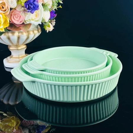 Жаропрочный фарфор - серия представлена в виде прямоугольных, квадратных, овальных и круглых блюд разного объема, круглых кастрюль и порционных формочек.