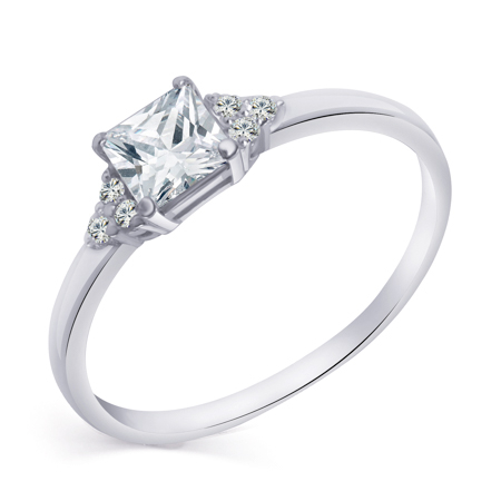 Кольцо с фианитом родированное серебро 925* (арт. 10-0006)