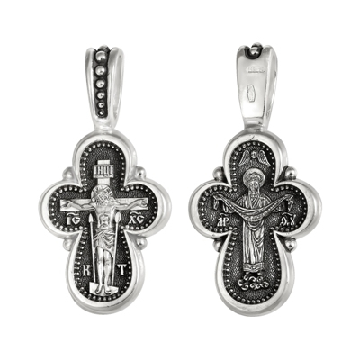 Крест (образ Покрова) из серебра литье частичное чернение (арт. 2-342-3)
