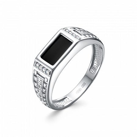 Кольцо (Спаси и Сохрани) из серебра родированное литье с фианитом (арт. 10-2623)