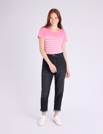 This striped t-shirt blends timeless charm with modern comfort, making it a go-to for everyday outfits. Whether you’re headed to brunch or lounging at home, this tee offers a laid-back look that never goes out of style.