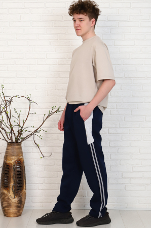 Спортивные брюки с боковыми карманами и контрастными вставками-лампасами. Модель зауженная, выполнена из трикотажного полотна - супер-футер. Отличный вариант для сезона зима-осень и активных людей.