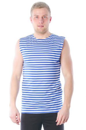 Майка-тельняшка изготавливается из трикотажной кулирной ткани с чередующимися горизонтальными синими и белыми полосками. Полосатые тельняшки стали традицией и весьма популярны в качестве романтического символа моря, морской службы, храбрости и удали.