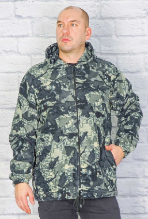 Теплая, легкая флисовая толстовка с капюшоном прямого кроя на молнии. Рукава внизу на резинке, два глубоких накладных кармана. В нижней части куртки есть шнурок-стяжка для дополнительной защиты от ветра и холода.
