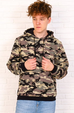 Ткань - футер двухнитка с небольшим начёсом. Приятная к телу и мягкая. Расцветка ткани с набивным эксклюзивным рисунком в стиле "милитари" делает модель интересной и эффектной.