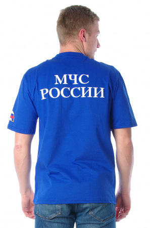Футболка мужская, классическая модель, на рукаве изображен триколор России, сзади футболки крупным белым шрифтом надпись «МЧС России», наносимая методом прямой цифровой печати непосредственно на текстиль с помощью красок на водной основе, которые безвредны и выдерживают многолетнюю эксплуатацию – не стираясь и не выцветая. В производстве футболок используется полотно кулированное состоящее из 100% хлопка, плотностью 150-160 г/м2.