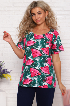 Женская хлопковая футболка. Модель прямого кроя, рукав втачной. Ткань кулирка с набивным рисунком.