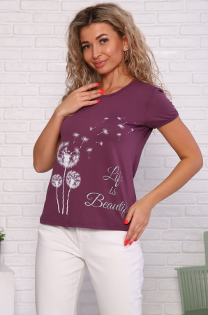 Обворожительно, грациозно и очень женственно смотрится футболка с изящным принтом "одуванчики".