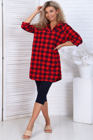 Удобный, стильный и невероятно женственный костюм для повседневного образа. Удлинённая туника-рубашка с отрезной кокеткой и отложным воротником. Модель с удлинённой спинкой, комфортный рукав 3/4. Бриджи облегающие, длина ниже колена, пояс на резинке.