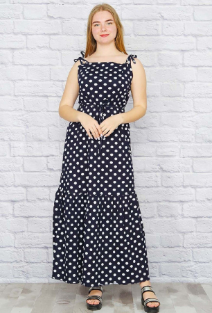 Яркий летний сарафан из качественного кулирного полотна. Модель с отрезной талией на резинке. Тонкие двойные бретельки на завязках, снизу широкая оборка.