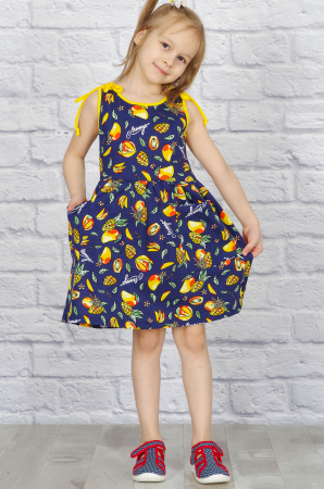 Симпатичное, лёгкое платье для девочки. Модель без рукавов, с отрезной пышной юбкой и накладными карманами.