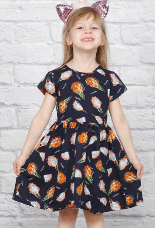 Красивое летнее платье для девочки. Модель с пышной отрезной юбкой, рукав короткий.