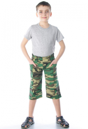 Отличные шорты из камуфлированного трикотажа с накладными карманами. Для производства изделия используется кулирное трикотажное полотно плотностью 150 г/м2, составом 100% хлопок.