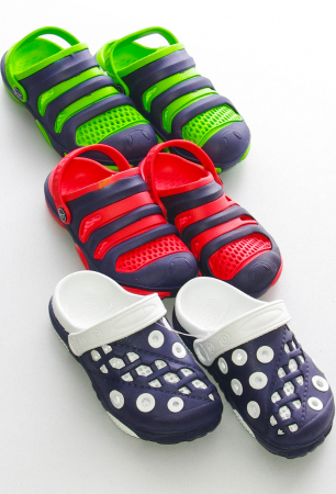 Яркая летняя обувь для мальчишек и девчонок. Модные и удобные двойные "кроксы" понравятся каждому ребёнку! Мягкий и лёгкий материал  - ЭВА, регулируемый задник легко превращает сандалии в сланцы.