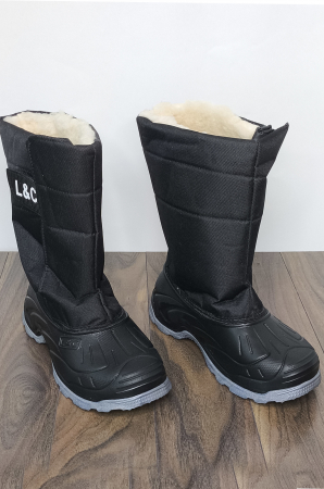 Утепленные мужские сапоги. Непромокаемая нижняя часть на основе галоши. Противоскользящая подошва из материала ТЭП. Верх сапога из водоотталкивающей ткани оксфорд. Внутри утеплитель из искусственного меха. Объем на голенище регулируется липучкой.