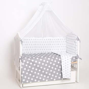 Комплект в детскую стандартную кроватку с мягкими бортиками и балдахином.