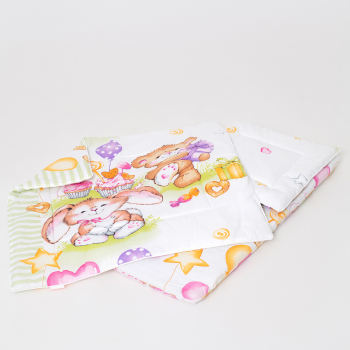 Лёгкий, мягкий комплект в детскую коляску состоит из матрасика, стёганного одеяло и подушки.