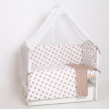 Комплект в детскую стандартную кроватку с мягкими бортиками и балдахином.