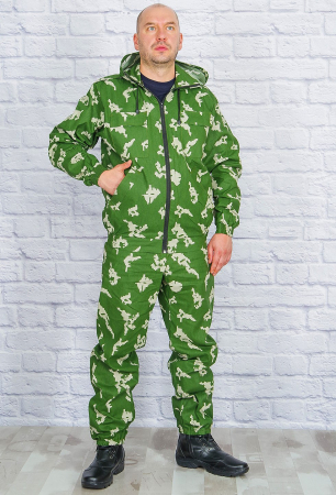 Удобный, облегчённый летний костюм из сорочечной ткани (бязь). Куртка укороченная, низ на манжете и резинка сзади. Центральная застежка на молнии, два нижних боковых кармана и два верхних удобных накладных с клапанам на липучке, рукав втачной, на манжете с резинкой, на плечах погоны на липучке. Брюки имеют 2 внутренних боковых кармана, пояс на резинке - без гульфика, низ брюк на резинке. Костюм упакован в сумочку.