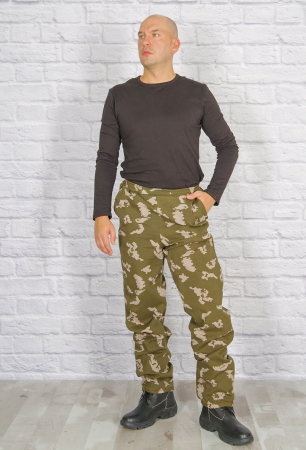 Отличные мужские брюки для летнего активного отдыха из сорочечной лёгкой и дышащей ткани. Модель с высокой посадкой, пояс на резинке, удобные боковые карманы, снизу на резинке - хорошая защита от насекомых.