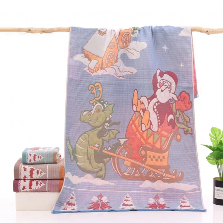 Мягкое хлопковое полотенце в двух размерах: для лица и для бани. Украшено рисунком под гобелен с символами наступающего года – Дедом Морозом и симпатичным Драконом.