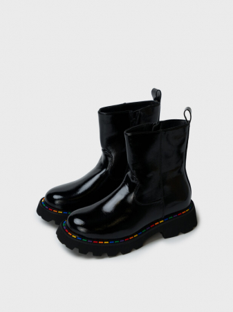 Лаковая поверхность и аккуратная форма придают таким стильным школьным ботинкам для подростков опрятный и нарядный вид, подходящий как для школы, так и для прогулок.