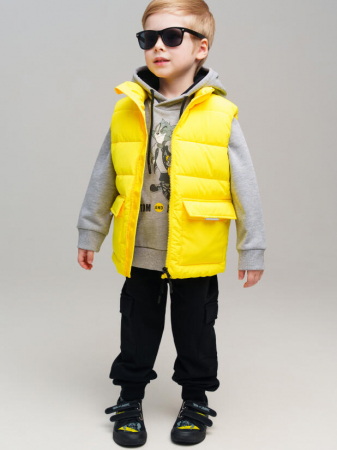 Жилет утепленный детский для мальчика. Температурный режим до +10°С*. Линия температурного режима X-LIGHT. Идеально подходит для весны и теплой осени. Материал верха с ветрозащитным и водоотталкивающим покрытием. Внутренняя ветрозащитная планка. Два боковых кармана на липучке. Гладкая подкладка таффета. Светоотражающие элементы.*Пожалуйста, обратите внимание, что указанный температурный режим является приблизительным и зависит от многих факторов, таких, как возраст, физическое состояние, уровень активности ребенка и количество слоев одежды. Время, проведенное на открытом воздухе, и погодные условия, такие как холодный ветер, могут повлиять на тепловые характеристики изделия. Убедитесь, что защищены от холода голова, руки и ноги.
