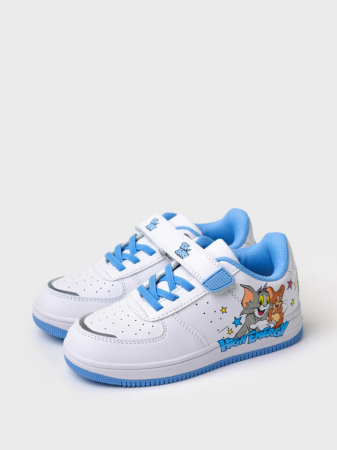 Кеды детские для мальчика. Стильные кроссовки с оригинальным принтом с героями WARNER BROTHERS (Уорнер Бразерс): мышонок Jerry (Джерри) и кот Том (Tom). Кроссовки выполнены из искусственной кожи, обладающей высокими эксплуатационными свойствами. Модель имеет светоотражающие элементы. В обуви стоит текстильная подкладка c высоким содержанием хлопка 80%, которая обладает высокой гигроскопичностью. Резиновые шнурки и липучка очень удобны при обувании. Профилированная съемная стелька из натуральной кожи с анатомической формой подсводника обеспечивает правильную нагрузку на стопу. Формоустойчивый задник поддерживает стопу в правильном положении. Эргономичная форма колодки обеспечивает правильное формирование стопы ребенка. Подошва из ТПР гибкая, не скользит и устойчива к истиранию.