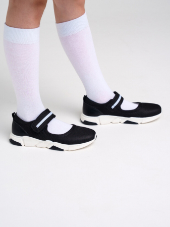 Эти черные подростковые туфли для девочек подойдут как сменная обувь в классе, а также для прогулок в сухую погоду — весной, летом и ранней осенью. Модель удобна в течение всего дня: ребёнку будет комфортно и на уроках, и во время перемен.