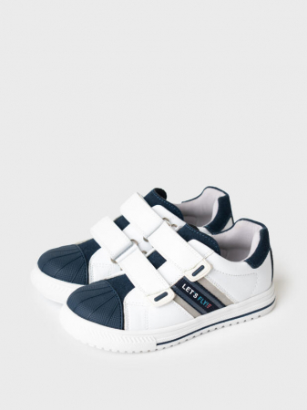 Трендовые кеды для мальчика с защитой носочной части. Две липучки создают удобство при обувании. В обуви используется текстильная подкладка c высоким содержанием хлопка 80%, которая обладает высокой гигроскопичностью. Стелька выполнена из натуральной свиной кожи и имеет анатомический элемент для поддержания свода стопы в правильном положении. Формоустойчивый задник поддерживает стопу в правильном положении. Эргономичная форма колодки обеспечивает правильное формирование стопы ребенка. Подошва из ТПР не скользит, очень легкая и гибкая