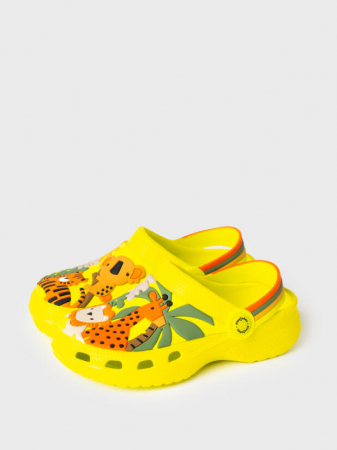 Сабо детские для мальчика. Сабо из облегченного и прочного ЭВА. Материал хорошо моется. Объемный рисунок на правой и левой полупарах рассказывают нам целую историю мира джунглей. Форма модели учитывает эргономику стопы. Модель имеет перекидной ремешок для лучшей фиксации обуви на ноге. Благодаря вентиляционным отверстиям сабо проветриваются, ноги ребенка дышат и не потеют.
